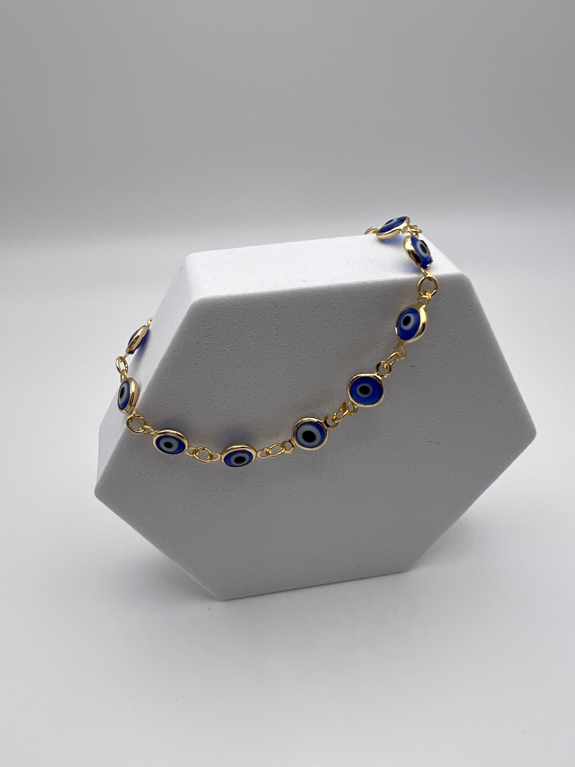 Gold Plated - This gold evil eye bracelet is perfect for adding a stylish and meaningful touch to your everyday attire. Featuring an adjustable design to accommodate any wrist size, you can easily enjoy the protective powers of the evil eye without having to worry about it not fitting. For a fashionable and functional accessory, this eye bracelet is the perfect addition.